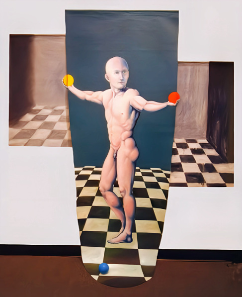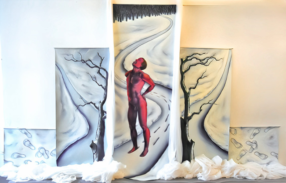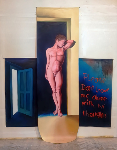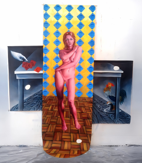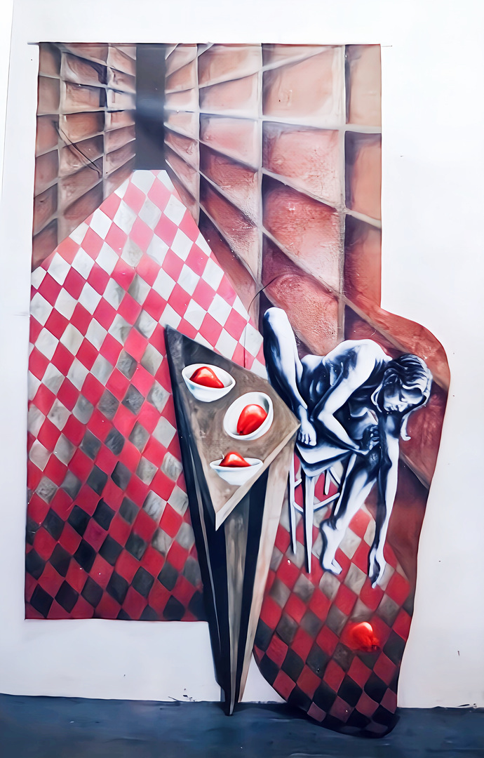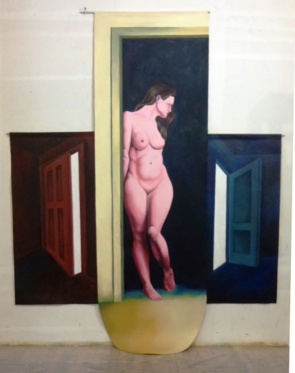 My goal was to employ perspective to pull the spectator into the depths of the piece while also creating a figurative image with a still life in the