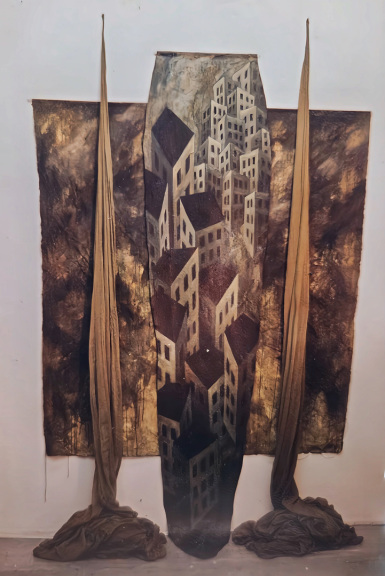 Oil On Canvas with Styrofoam Bricks
